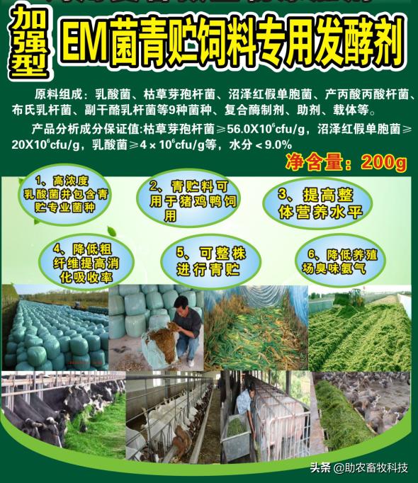相關(guān)鏈接—— 加強(qiáng)型EM菌青貯飼料專用發(fā)酵劑,真正的專業(yè)菌種更好的青貯飼料發(fā)酵劑,發(fā)酵成功率高速度快,香醇可口,牛羊喜吃,連豬雞都搶吃