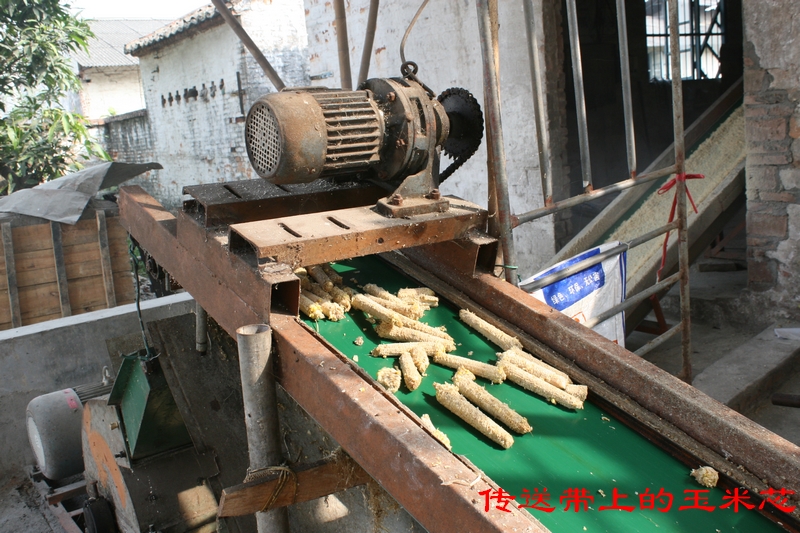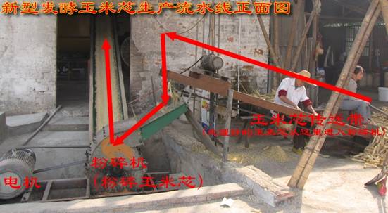 1.將玉米芯外的包葉處理掉并放到傳送帶,玉米芯最好含有一定的水分,剛收下來的玉米芯可直接利用。干的玉米芯在攪拌中要添加少量水分。如果要連同玉米包葉、一些莖稈一起粉碎,將下面的機(jī)器改為助農(nóng)第三代牧草超細(xì)粉碎機(jī)即可,效果更好。