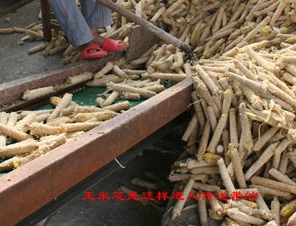 2. 玉米芯經(jīng)過傳送帶被帶到粉碎機(jī)進(jìn)行粉碎