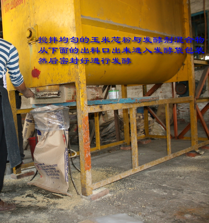 4. 攪拌好的玉米芯通過出料口后進(jìn)行封袋密封發(fā)酵。
