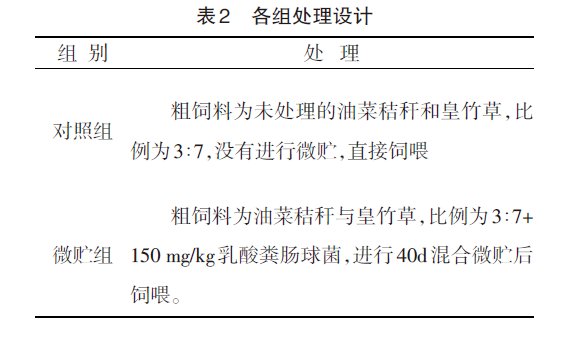 油菜秸稈在江西當(dāng)?shù)剡x購(gòu),皇竹草在高安市裕豐農(nóng)牧有限公司的種植基地種植。利用前期研究中得出的油菜秸稈與皇竹草4種適宜的混合微貯模式,采用包膜微貯方法制作混合微貯料。先將油菜秸稈和皇竹草分別進(jìn)行揉搓,然后按照表1將菜秸稈和皇竹草進(jìn)行混合,并添加乳酸糞腸球菌,打包,微貯40d。