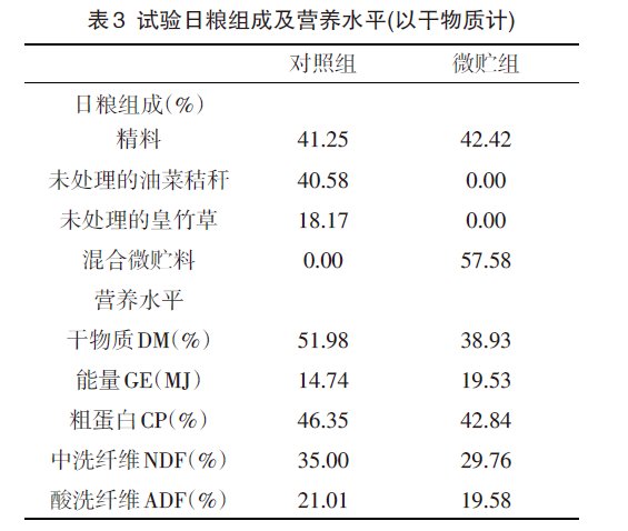 由表5可見(jiàn),微貯試驗(yàn)組的干物質(zhì)DM、有機(jī)物質(zhì)OM、能量GE、粗蛋白CP、中洗纖維NDF、酸洗纖維ADF 的消化率均顯著高于對(duì)照組(P<0.05)。