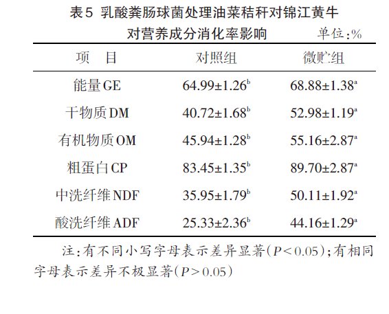 乳酸糞腸球菌處理油菜秸稈對(duì)錦江黃牛對(duì)營(yíng)養(yǎng)成分消化率影響測(cè)定結(jié)果見(jiàn)表5。