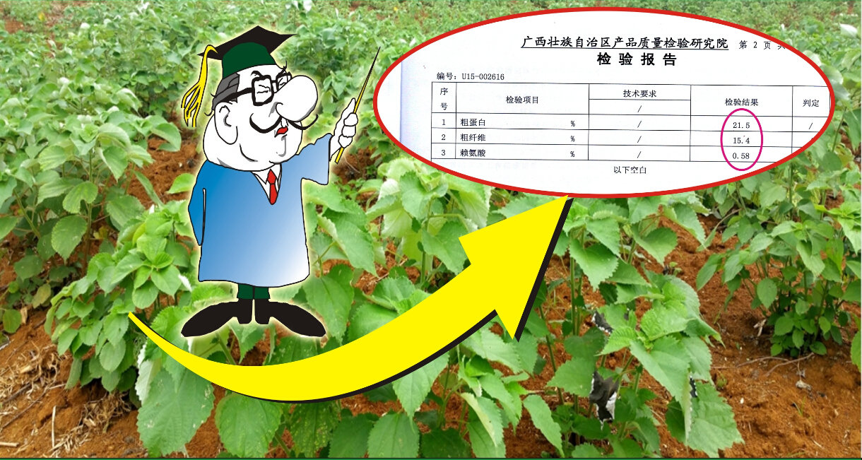 年產(chǎn)量高嫩莖葉在16噸/畝左右(嫩莖葉干料年總產(chǎn)量在1.5噸/畝以上),干料粗蛋白在23%左右,粗纖維含量 17%左右,鈣含量4.2%(左右),粗脂肪含量2.3%(左右),維生素B2含量(mg/kg)14%左右,賴氨酸含量高達1.2%左右,最高超過1.5%,是名副其實高賴氨酸含量的植物蛋白質(zhì)飼料。經(jīng)飼養(yǎng)豬等經(jīng)濟動物進行對比試驗,經(jīng)濟效益提高明顯,是種植玉米效益的6倍以上。
