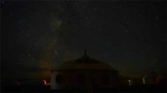 綠草如海,畜群如云,氈包如扣,河曲流銀