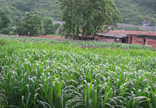 皇竹草由于根系發(fā)達(dá),對(duì)陡坡耕地及河灘沙地均有極強(qiáng)的改造能力,能有效地抑制水土流失,改善生態(tài)環(huán)境,是目前大力推廣的牧草新品種。