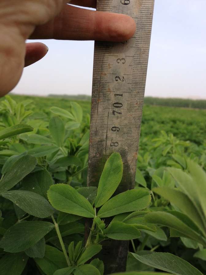 4、收割:在江淮地區(qū)每年可刈割4-5次,一般畝產(chǎn)鮮草6000-8000公斤,高者可達(dá)10000公斤以上。通常4公斤鮮草可曬制1公斤干草。曬制干草應(yīng)在初花期10%植株開花刈割,刈割高度以距地5厘米為宜,最后一次刈割不能太遲,否則影響苜蓿的安全越冬。