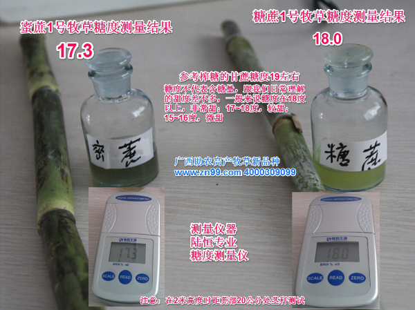 特別注意:鑒別是否真假“蜜蔗1牧草”, “蜜蔗1牧草”是目前國內(nèi)甜度僅稍次于“糖蔗1號牧草”的牧草品種,砍下收獲的或者購買回來的種莖距離根部較近部分,用牙咬下,能夠明顯感覺到清甜,且甜度幾乎跟甘蔗相當(dāng),沒有明顯的甜味肯定不是“蜜蔗1號牧草”,防止用“新型皇竹草”、“臺灣甜象草”等品種假冒;莖稈直徑只有甘蔗的三分之一到五分之一,葉片無毛,這在目前來說莖稈能夠接近甘蔗甜度的就只有“糖蔗1號牧草”或者“蜜蔗1號牧草”。兩個品種均為廣西助農(nóng)公司培育的新牧草品種,從2015424日才開始對國內(nèi)首批供種,沒有任何的代理商,由我公司直供,請大家一定要注意假冒行為。