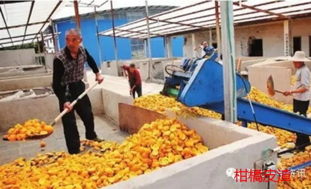 柑橘皮渣是柑橘加工業(yè)的副產物,包括果皮、種子、橘絡和殘余果肉等,其中柑橘渣主要是甜橙壓榨制汁后的副產物,約占果實重量的50%,柑橘皮主要是蜜桔制罐后的副產物,約占果實重量的25%。隨著柑橘產業(yè)的快速發(fā)展,越來越多的柑橘用于深加工,產生了大量的柑橘皮渣。