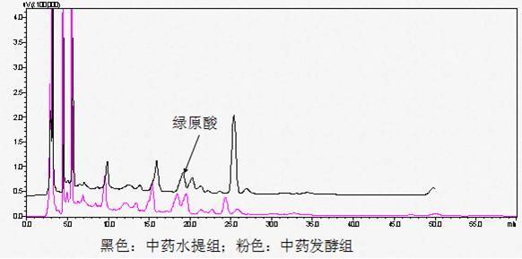 中藥水提和中藥發(fā)酵中綠原酸含量相差不大。乳酸菌發(fā)酵未改變蒲公英有效成分綠原酸的含量。