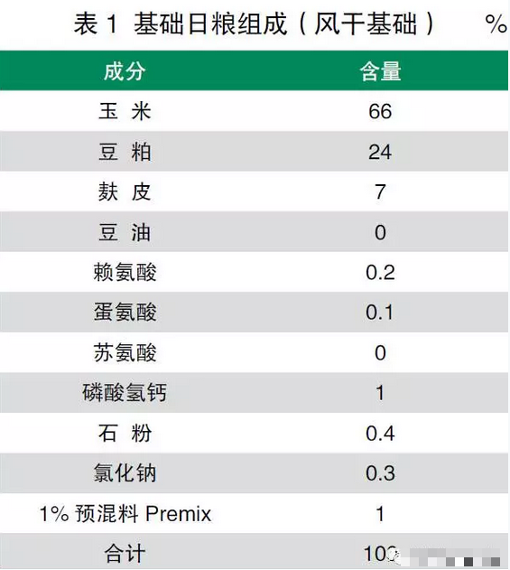 發(fā)酵基質(zhì):玉米- 豆粕型基礎(chǔ)日糧,日糧配方設(shè)計參照NRC(1998)生長豬標(biāo)準(zhǔn)配制,日糧配方組成及營養(yǎng)水平見表1。
