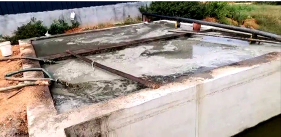 步驟二:取三分之一激活菌液兌適量清水灑入約100立方糞污中,第三天再灑入一次,第六天再灑入一次。做了個(gè)電動(dòng)抽水泵,來(lái)回循環(huán)增加發(fā)酵勻度加快發(fā)酵速度。