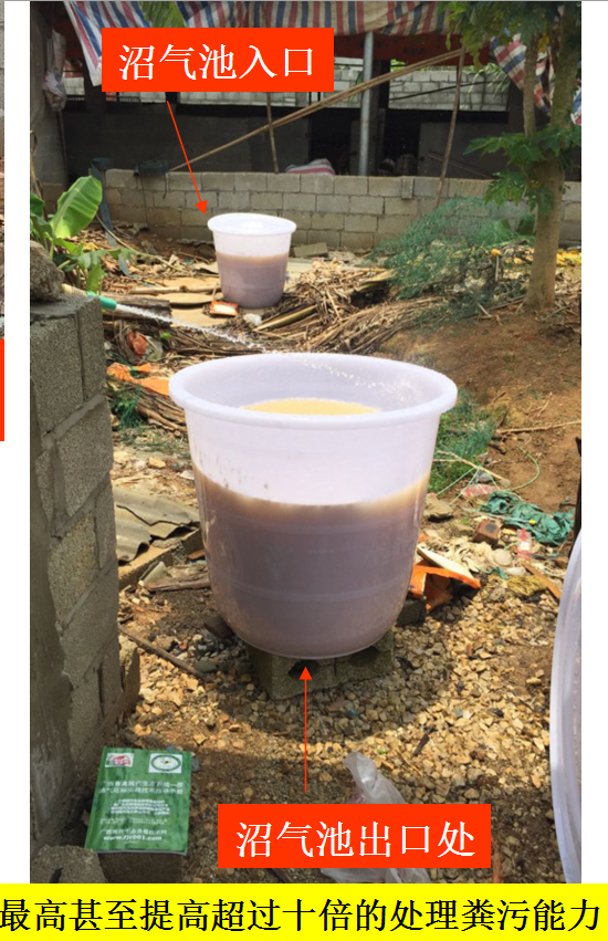 比較簡單和成熟的做法是在沼氣池的入口設(shè)置一個塑料大缸,在大缸中激活專用微生物(如“養(yǎng)殖場污水生物處理劑”),大缸底部有一個水龍頭,根據(jù)需要定時開啟或一直緩慢加入。經(jīng)驗表明,使用一周左右,沼氣池處理糞污的能力就顯著提高,最高甚至提高十倍以上。一個月左右,沼氣池溢出口的水臭味已經(jīng)明顯降低。