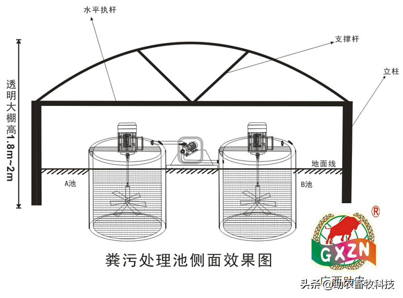 值得注意的是,一個池糞污滿了關(guān)閉糞污進入開始處理,糞污流到另外一個池,進行交替處理。