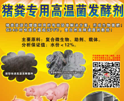 其實(shí)就是將動(dòng)物糞便發(fā)酵起來(lái)。之所以產(chǎn)生臭味,就是因?yàn)槎逊诺募S便沒(méi)有及時(shí)發(fā)酵。市場(chǎng)上購(gòu)買“豬糞專用高溫菌發(fā)酵劑”,發(fā)酵1噸約5元菌種成本,含水量調(diào)節(jié)在60%左右,堆積高度1米以上,72小時(shí)左右臭味大幅度下降,7-10天發(fā)酵成無(wú)臭味的有機(jī)肥。
