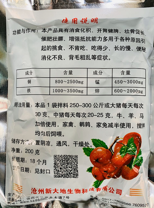 山楂開(kāi)胃靈--滄州大地 本品具有消食化積、開(kāi)胃健脾、壯骨促長(zhǎng)、催肥壯膘、增強(qiáng)抵抗能力多用于各種原因引起的挑食、不肯吃、吃得少、長(zhǎng)得慢、便秘、消化不良、背毛粗亂等癥狀