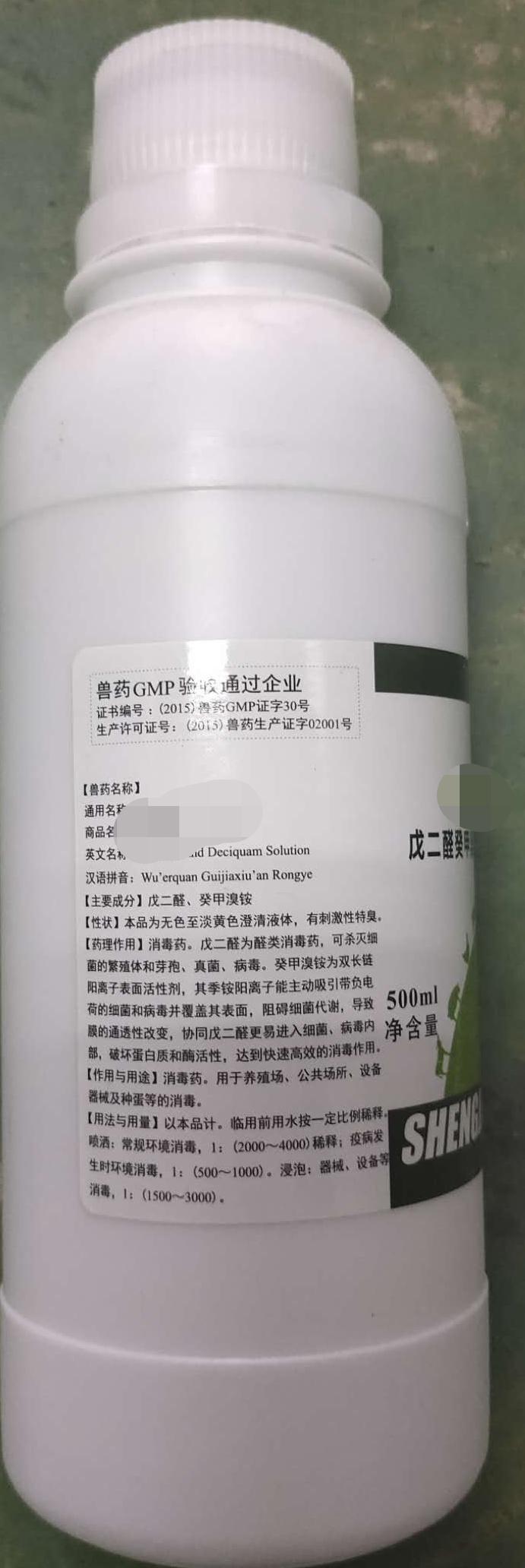 用法用量:以本品計。臨用前用水按一定比例稀釋。噴灑:常規(guī)環(huán)境消毒,1:(2000-4000)稀釋;疫病發(fā)生時環(huán)境消毒,1:(500-1000)。浸泡:器械、設(shè)備等消毒,1:(1500-3000).如有需要請聯(lián)系小閉,電話:13558464744 微信同號
