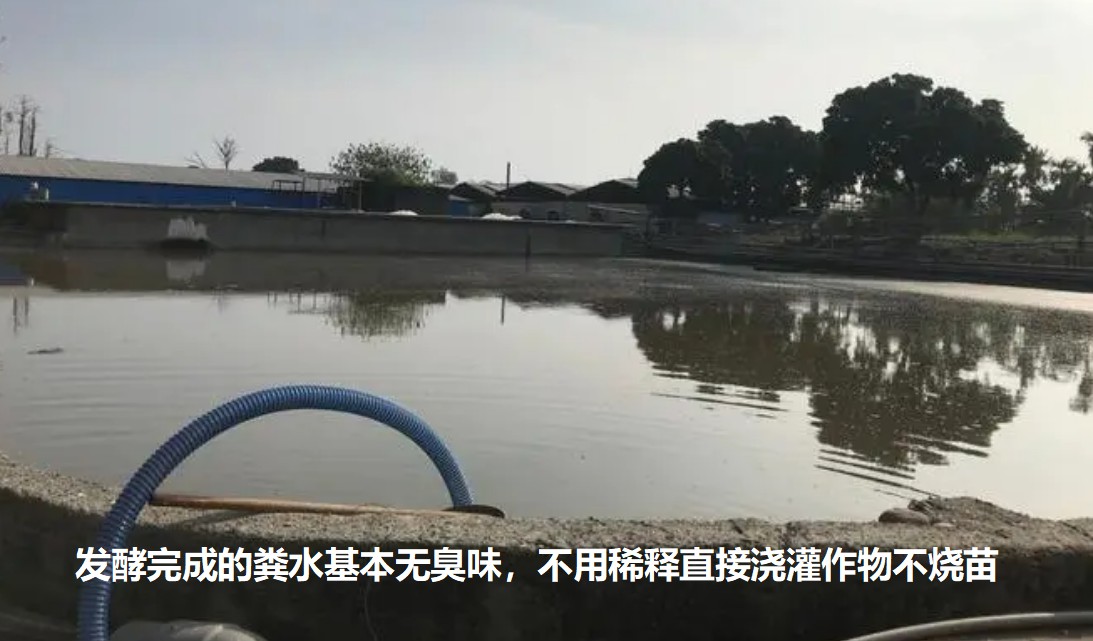 一般發(fā)酵15天左右糞便都大部分化解且臭味基本消除,可以直接澆灌不燒苗,也可以根據(jù)不同作物稀釋后澆灌或過濾后滴灌。