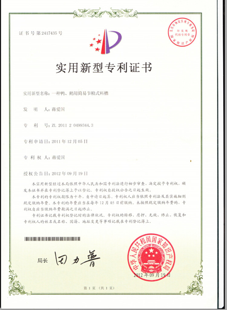 4.《一種蛋雞場雞糞全降解發(fā)酵床》專利號:ZL201120015000.0;