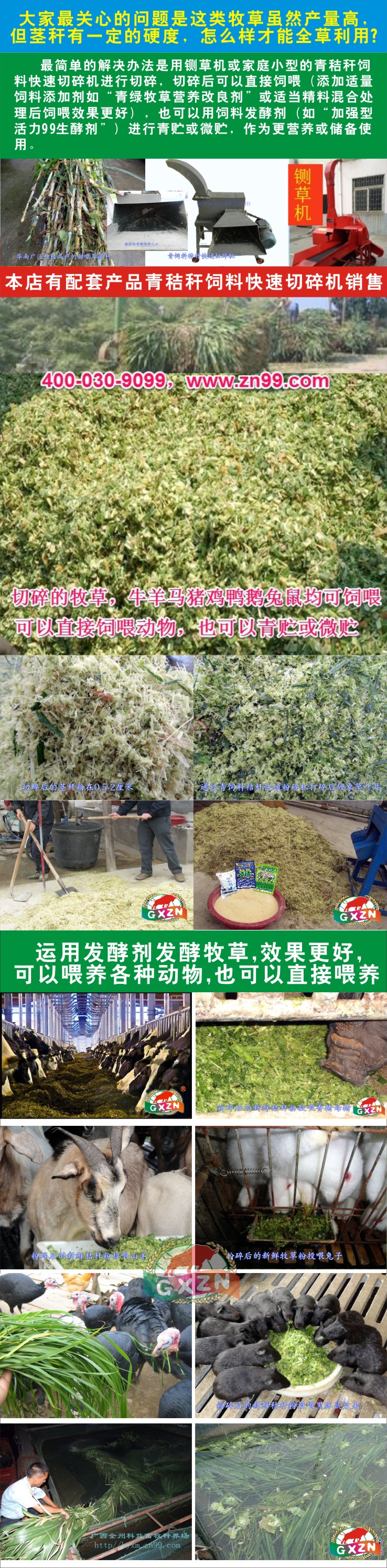 在新型皇竹草、臺灣甜象草、紫色皇竹草、糖蔗1號牧草、蜜蔗1號牧草這些牧草品種生長高度1.2-1.5米刈割是最佳時期,將這些牧草用鍘草機或家庭小型的青秸稈飼料快速切碎機進行切碎,不僅大型家畜牛羊馬驢等吃沒有問題,小型草食動物動物如豚鼠、竹鼠、蔗鼠、豪豬等甚至豬、雞、鴨、鵝也一樣喜吃(特別是混合飼料添加劑或青貯處理后),非常有效地降低養(yǎng)殖成本。