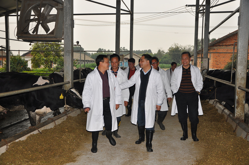 梁雄書記、王強副局長在廣西農(nóng)墾西江乳業(yè)有限公司奶牛場調(diào)研。
