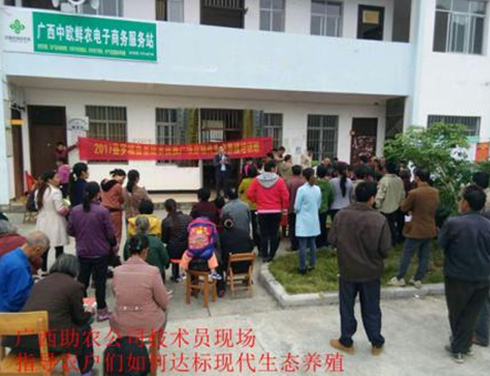 2017年11月12日-16日廣西助農(nóng)公司技術(shù)員跟隨羅城縣水產(chǎn)畜牧獸醫(yī)局領(lǐng)導(dǎo)到本縣東門鎮(zhèn),兼愛鄉(xiāng),小長安鎮(zhèn),納翁鄉(xiāng)等舉辦現(xiàn)代生態(tài)養(yǎng)殖培訓(xùn)班,并走訪部分農(nóng)戶,指導(dǎo)其改變落后的傳統(tǒng)家庭養(yǎng)殖模式,應(yīng)用現(xiàn)代生態(tài)養(yǎng)殖改變農(nóng)家院落臟、亂、差的現(xiàn)狀。