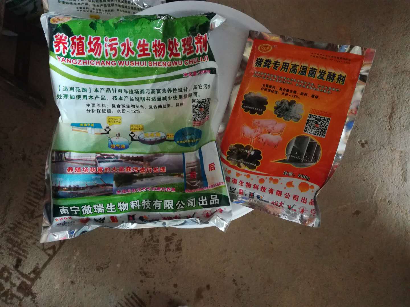 豬場污水用管道引到污水貯存池,雨水和飲水器漏出的水,自己流歸大自然。污水用助農(nóng)公司“養(yǎng)殖場污水生物處理劑”處理后可用來淋菜、種果、施肥。