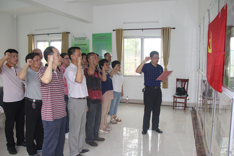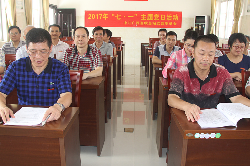 “我志愿加入中國共產(chǎn)黨,擁護黨的綱領(lǐng),遵守黨的章程……”面對鮮艷的黨旗,黨員們高舉右手,莊嚴宣誓,錚錚誓言震耳欲聾,久久回蕩在養(yǎng)殖場各個角落。由此,廣西畜牧總站結(jié)合生態(tài)養(yǎng)殖技術(shù)到基層,2017“七一”喜迎十九大勝利召開黨支部主題黨日活動正式拉開序幕。