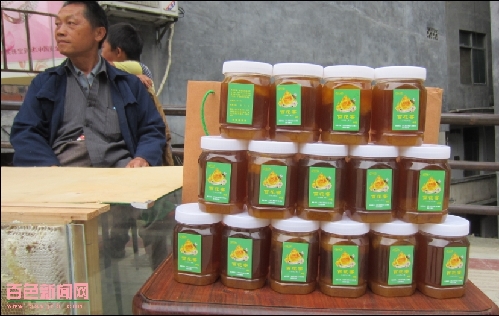 要發(fā)展蜜蜂養(yǎng)殖,首先要解決的是群眾缺乏蜂箱的問題,李振華便積極與后援單位的廣西質(zhì)監(jiān)局聯(lián)系,得到后援單位支持3.5萬元資金為石炮屯群眾采購養(yǎng)蜂設(shè)備,還發(fā)動該屯群眾王正良、楊國芳、楊國安、楊金榮、楊學(xué)良、楊文先、熊林濟(jì)、王曉峰、王文春、李神等十戶成立養(yǎng)蜂合作社,還注冊了“石炮原生態(tài)野生蜜蜂”商標(biāo),使石炮屯的養(yǎng)殖蜜蜂由原來的150多個蜂箱發(fā)展到現(xiàn)在的350箱,產(chǎn)值約50多萬元。石炮屯群眾楊國芳,在李振華的動員下,甘當(dāng)發(fā)展養(yǎng)蜂產(chǎn)業(yè)的領(lǐng)頭人,如今他帶領(lǐng)的“養(yǎng)蜂隊”已發(fā)展了十幾個技術(shù)骨干,去年他靠養(yǎng)蜂純收入3萬元左右。石炮屯群眾王正良是個木匠,平時經(jīng)常為寨子里的人做碗柜、床架、衣柜、板凳等家具,一年也有不少收入,但他也加入到了養(yǎng)蜜蜂的隊伍里,家里現(xiàn)在養(yǎng)殖蜜蜂30多箱,僅蜂蜜一項年收入5萬多元。每到縣城圩日,王正良就和其他合作社隊員到縣城擺賣蜂蜜,順便向廣大顧客發(fā)放“石炮野生蜂蜜”名片,因?yàn)槭谕碗x縣城不遠(yuǎn),地處西林往隆林方向的5公里處,交通便利,發(fā)放名片方便人們與合作社聯(lián)系,有的顧客或開土特產(chǎn)店的老板都喜歡自己驅(qū)車去購買蜂蜜。“養(yǎng)殖蜜蜂的路子我們是走得對了,投入又少,不費(fèi)什么勞力,產(chǎn)生的經(jīng)濟(jì)效益又好,是一項生態(tài)建設(shè)的好產(chǎn)業(yè);下一步我們將帶動龍保屯、大田屯、羊角老等高山群眾一起發(fā)展蜜蜂養(yǎng)殖,共同走致富的路子。”王正良高興地對筆者說道。