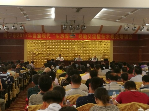 2017年4月14日下午,南寧市舉辦《南寧市2017年畜禽現(xiàn)代“生態(tài)養(yǎng)殖”經(jīng)驗(yàn)交流暨技術(shù)規(guī)范培訓(xùn)班》,500多人參加了會(huì)議。