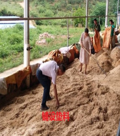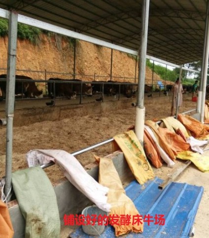 2.在地面鋪墊20-40厘米左右厚度的鋸末等每20個平方使用一包激活好的菌液,接入菌種要簡單翻耙一下,如墊料太干則需要另外噴灑一部分清水,墊料含水量控制在30-40%。接種24小時后即可進(jìn)牛,養(yǎng)殖密度為:100公斤的小牛2平方/頭,成年小牛6-8平方/頭,成年大牛10-15平方/頭。