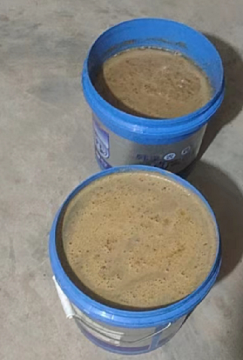 步驟二:2噸粉碎牧草與200公斤玉米粉、一包99多功能飼料發(fā)酵劑,4.5公斤食鹽混合壓實(shí)在塑料容器中密封發(fā)酵一周以上。