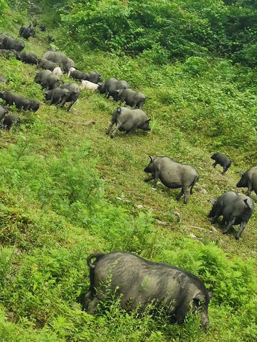 河池多家合作社一直使用發(fā)酵御溫湯方案防控非瘟結(jié)合發(fā)酵新鮮牧草放林下養(yǎng)殖黑豬