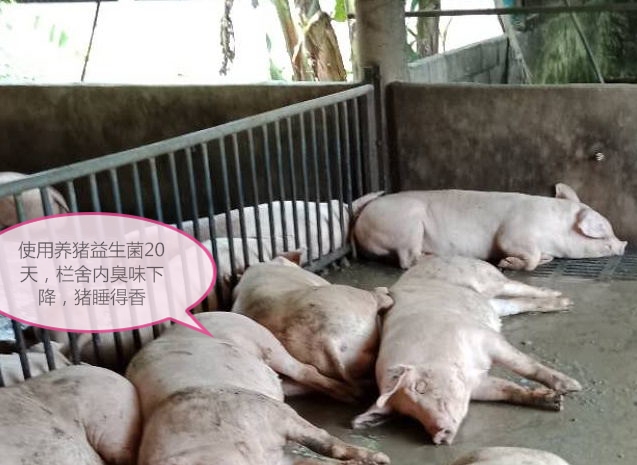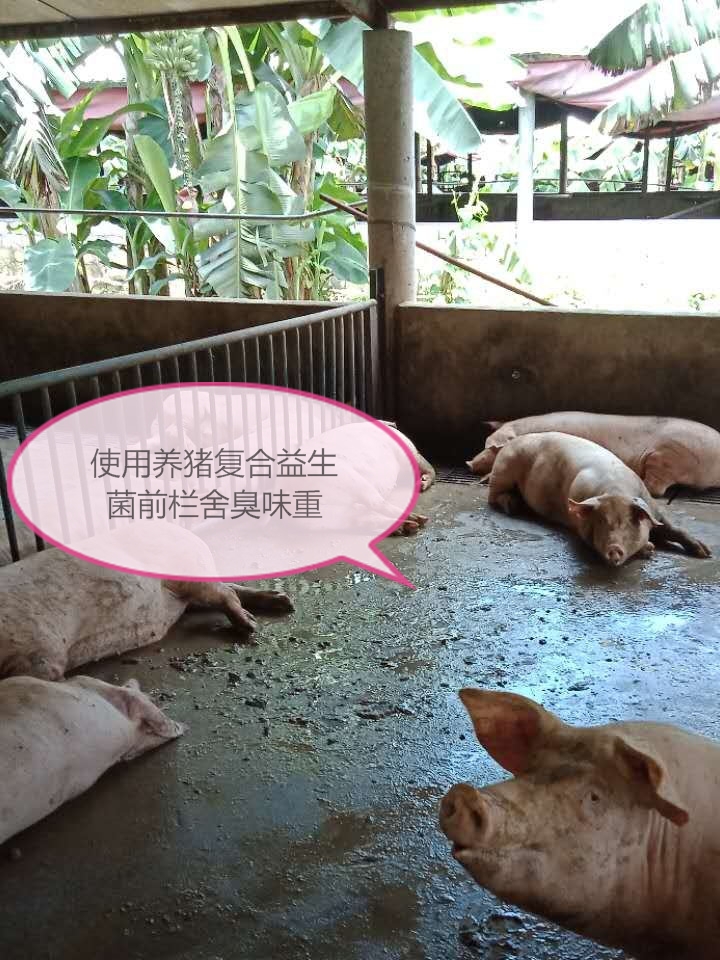 廣東省惠州梁海寶養(yǎng)殖場(chǎng)欄量150頭母豬采用廣西助農(nóng)的生態(tài)養(yǎng)殖系列產(chǎn)品與技術(shù)養(yǎng)豬:在飼料中添加養(yǎng)豬益生菌飼養(yǎng),大大的降低了料耗、降低了發(fā)病率,節(jié)約成本,使用了20天養(yǎng)殖場(chǎng)內(nèi)沒有臭味,沒有蒼蠅,養(yǎng)殖場(chǎng)的污水使用在沼氣池總?cè)肟谔幱靡粋€(gè)桶滴加強(qiáng)效除臭降污活菌劑的模式經(jīng)處理后的污水無臭味,達(dá)到做液體有機(jī)肥種植綠色牧草,既不燒根,也無臭,無蟲害,種植出來的牧草可以當(dāng)飼料按一定比例摻到飼料一起飼養(yǎng)后備母豬達(dá)到了節(jié)約成本,同時(shí)提高母豬授孕率。養(yǎng)殖場(chǎng)老板非常喜歡我們公司推薦的方案。