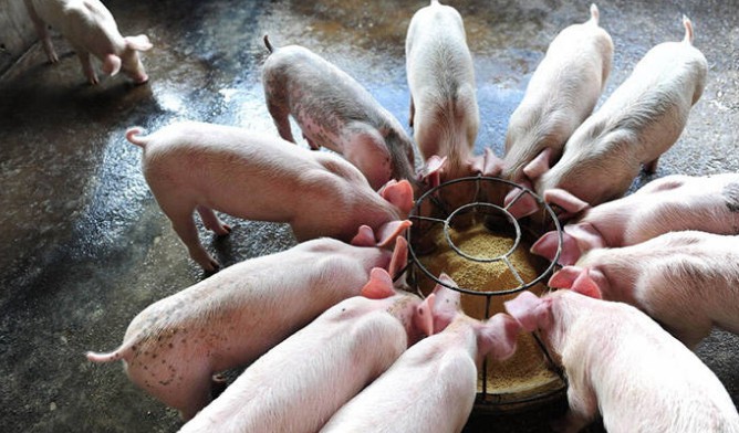 育肥豬從30公斤以上飼喂時(shí),按照5%-30%比例從小到多逐漸添加與豬全價(jià)飼料或者自配飼料混合后飼喂。