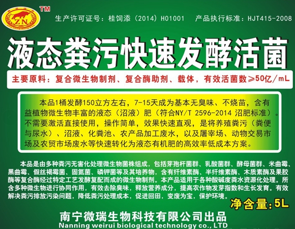 糞污直排是絕對不允許了,必須家家戶戶建好(沼氣池)儲污池。處理養(yǎng)豬場(沼氣池)儲污池快速除臭,成為優(yōu)質(zhì)液態(tài)有機肥使用“液態(tài)糞污快速發(fā)酵活菌”在(沼氣池)儲污池入水口,放置一個容積100公斤水的塑料桶并安裝塑料水籠頭,裝滿水(自來水),放入菌種”液態(tài)糞污快速發(fā)酵活菌”30-50ml(約3-5瓶蓋),開啟水籠頭自動滴入菌液。隨著糞污流速大小,調(diào)節(jié)菌液滴入流速,一般2-5天滴完一桶,重新配制,只要養(yǎng)豬,就產(chǎn)生糞污,菌種就需要不斷的滴入。7-15天后,糞污水臭味明顯減少,變成微褐色或暗紅色(低溫季節(jié)會延長),可以農(nóng)用液態(tài)有機肥。