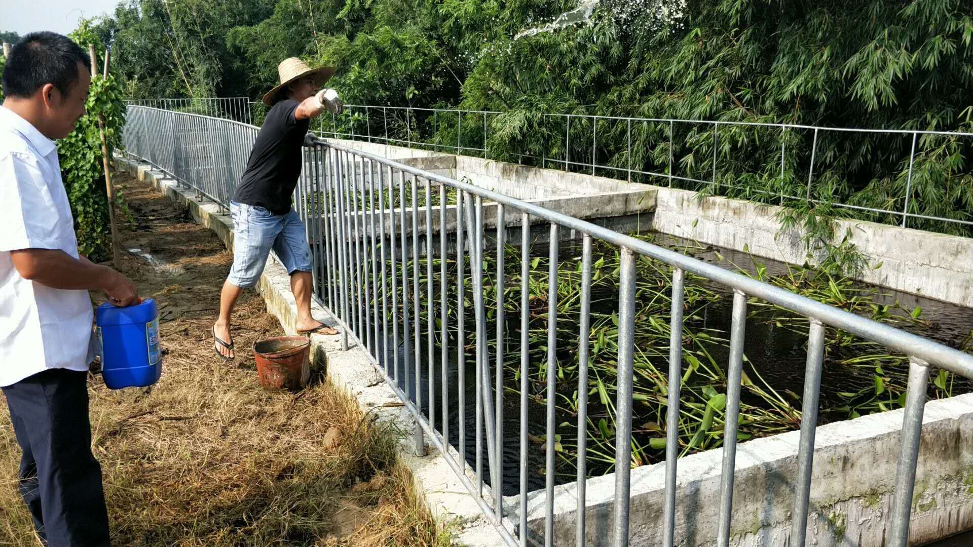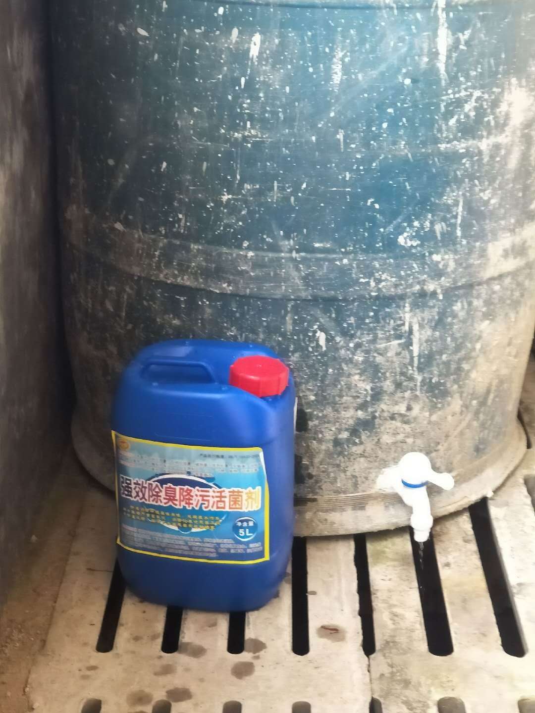 養(yǎng)殖場的污水使用:在沼氣池總?cè)肟谔幱靡粋€桶滴加強效除臭降污活菌劑的模式處理污水,技術員現(xiàn)場指導使用。在原來的集污池同樣使用強效除臭降污活菌劑潑灑,處理多年來沉積的豬糞池??焖俳鉀Q臭味以及氨氮高等問題。