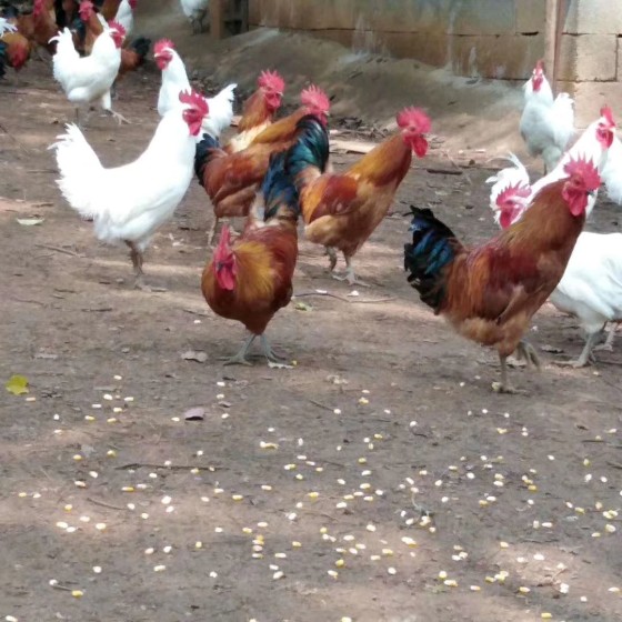 回到老家在自家的山林地,開始種牧草,就地取材用竹子搭建了一個簡單遮雨的棚子,上面是用石棉瓦,雞舍建好后,購買了1000只本地雞,矮腳,生長速度快,產(chǎn)蛋也高,買回家后,按照書上介紹做好疫苗,開食,保溫,把在網(wǎng)上買來的中草藥御溫湯發(fā)酵成中草藥液,拌料喂食,開始養(yǎng)的前一個月基本都是用飼料拌御瘟湯中草藥液來喂,一個月后,開始放出去散養(yǎng),自自己搭配的飼料來喂,玉米豆粕麥麩,配上10%的牧草粉,因為雞喂發(fā)酵中草藥很少生病,內(nèi)質(zhì)很好,雞生長速度快,體重達標,毛色光亮雞冠紅艷。