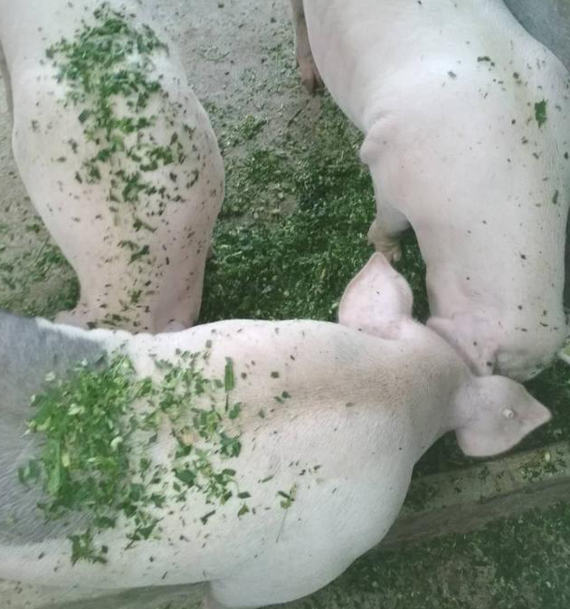 粉碎后的牧草喂豬