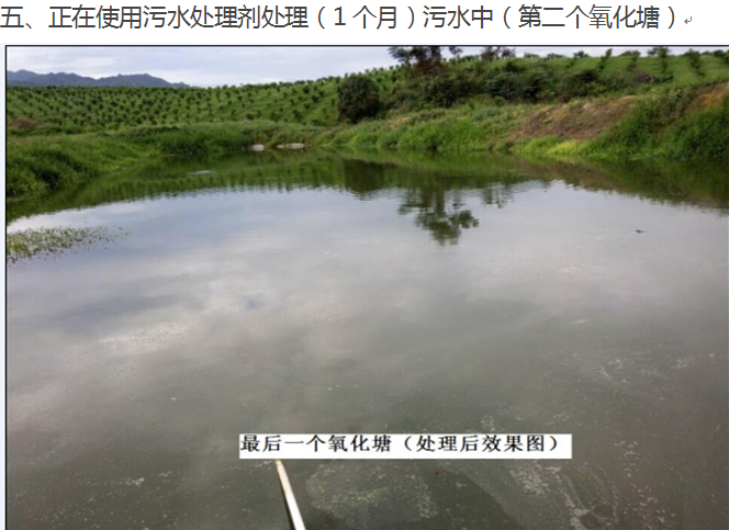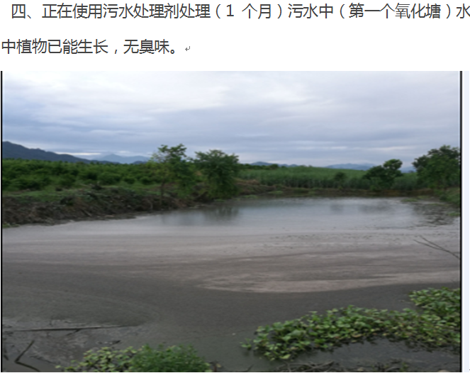 9月初回訪,養(yǎng)殖戶們、領(lǐng)導(dǎo)們非常滿意場內(nèi)無臭味了,無蒼蠅、污水由原來黑,臭,現(xiàn)在第一個污水池放植物下去可以生長了,最后一個氧化塘養(yǎng)魚,養(yǎng)殖戶在釣魚。