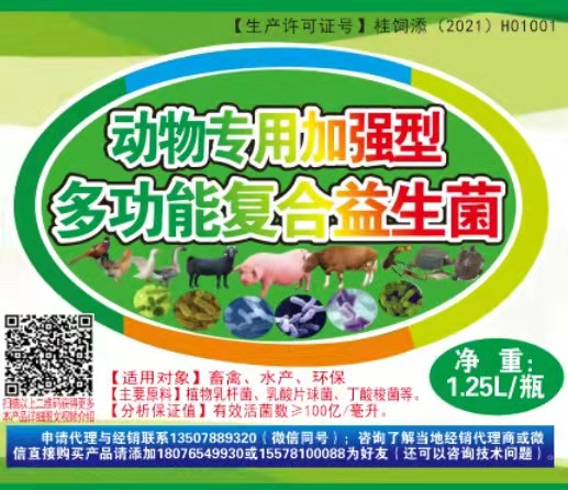 廣西助農(nóng)畜牧科技有限公司的下屬企業(yè)南寧微瑞生物科技有限公司是一家專業(yè)生產(chǎn)動物益生菌和酶制劑等產(chǎn)品的專業(yè)公司,在直接添加到動物飼料中的“養(yǎng)豬專用復(fù)合益生菌”、“養(yǎng)雞專用復(fù)合益生菌”、“鴨鵝養(yǎng)殖專用復(fù)合益生菌”、“牛羊養(yǎng)殖專用復(fù)合益生菌”等益生菌,飼料發(fā)酵劑產(chǎn)品如“99多功能飼料發(fā)酵劑”、“活力99生酵劑”、“粗飼料降解劑”、“加強型EM菌青貯飼料發(fā)酵劑”等物美價廉,運用效果直觀等優(yōu)點,20余年一直暢銷國內(nèi)外。我們不僅可以為您提供現(xiàn)有的專業(yè)產(chǎn)品,還可以為您針對性定制產(chǎn)品。