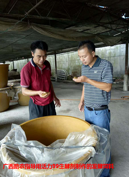 從去年開始,宜州市覃峒全生態(tài)養(yǎng)殖專業(yè)合作社開始采用廣西助農(nóng)畜牧科技有限公司指導(dǎo)的生物發(fā)酵飼料,使用活力99生酵劑發(fā)酵飼料加入飼料中,發(fā)生了巨大的改變——臭氣氨氣幾乎沒有了,豬病少了,用藥減少了,蒼蠅少了,飼料成本降低了……。