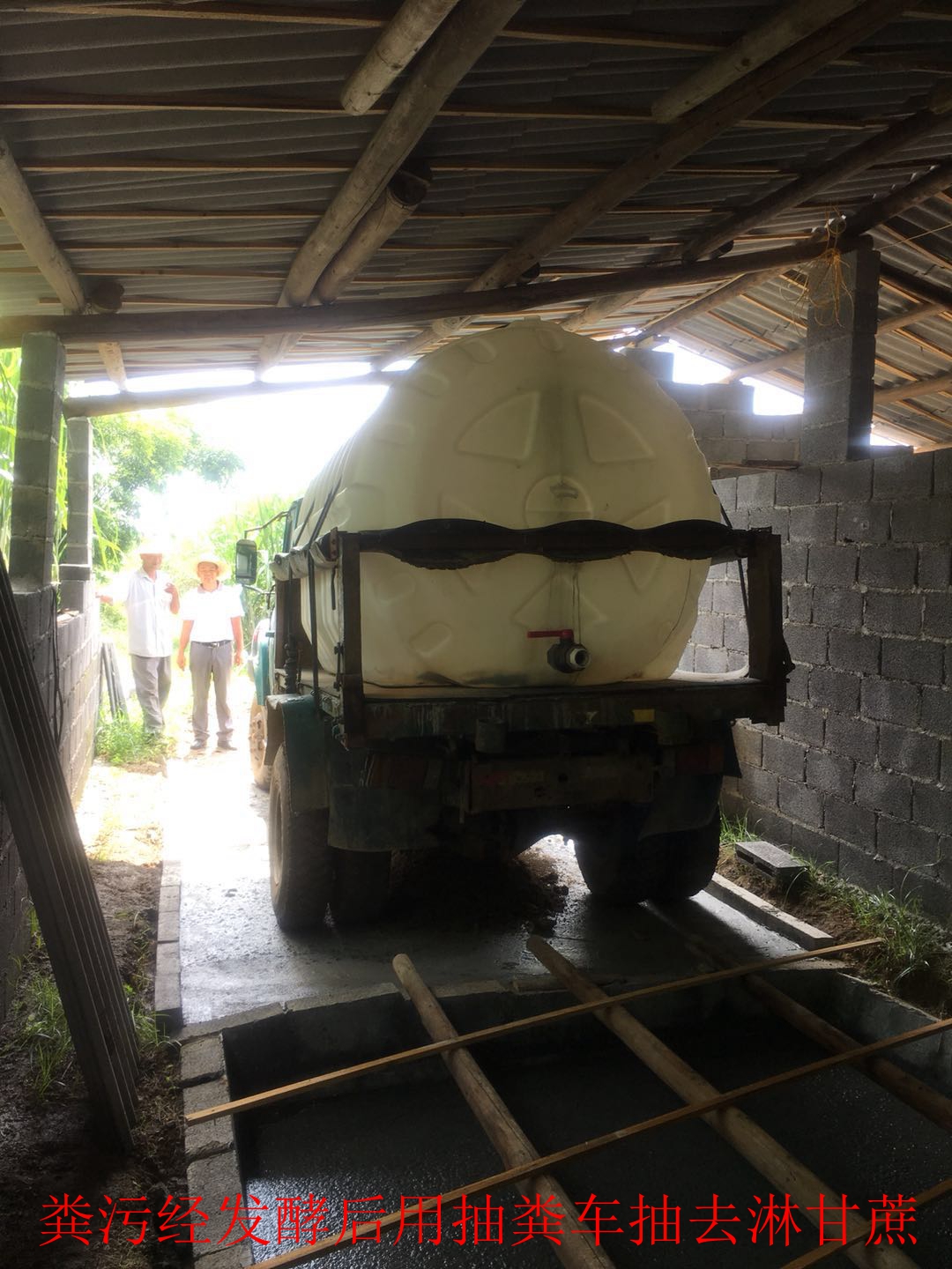 5.在沼氣池入水口與出水口長(zhǎng)期滴入液態(tài)糞污快速發(fā)酵活菌,兌水50倍使用,十五天左右即可將糞污抽走農(nóng)用,無(wú)臭味,不燒根。