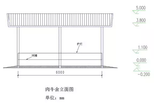 1、根據(jù)設(shè)計(jì)目標(biāo),肉牛舍采用雙列開(kāi)放式設(shè)計(jì),為磚木或鋼架結(jié)構(gòu)。牛舍高5米,長(zhǎng)10米,寬8米。