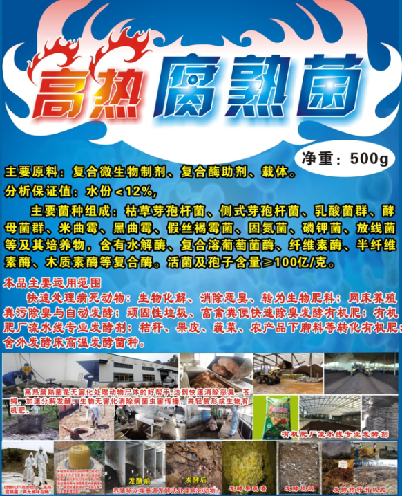 “豬糞專用高溫菌發(fā)酵劑”1包市場價(jià)格15元,可以發(fā)酵3噸豬糞,7-10天發(fā)酵成為,比自然發(fā)酵速度快5-10倍,且發(fā)酵過程中臭味氨氣少。