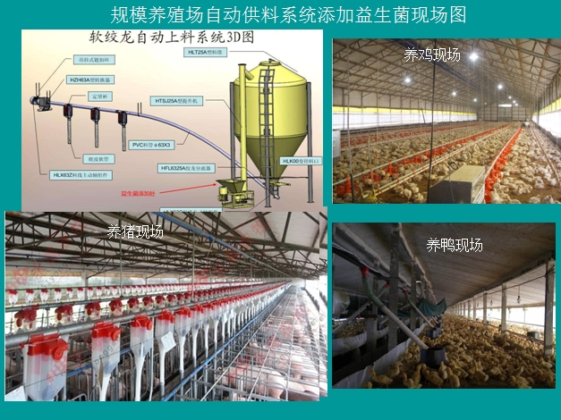 規(guī)模養(yǎng)殖場(chǎng)每天投喂量很大,現(xiàn)在大部分都采用自動(dòng)供料系統(tǒng),工人如果每天將益生菌與數(shù)噸飼料全部混合后投喂,這個(gè)工作量太大,就會(huì)影響積極性等。