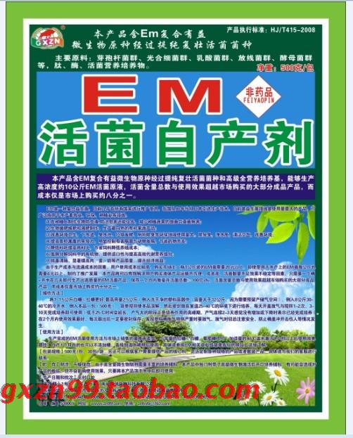 4)在水產(chǎn)養(yǎng)殖上的使用:拌料參考第一條,全池潑灑每立方米水體使用EM活菌1毫升,與等量糖、十倍水激活1小時(shí)后潑灑,一周一次,潑灑后建議開啟增氧。