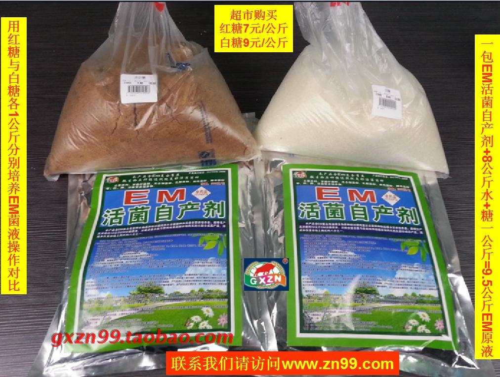 步驟一:在淘寶上購買一個(gè)叫“EM活菌自產(chǎn)劑“的產(chǎn)品,價(jià)格大約15元;購買1公斤紅糖,也叫紅砂糖、赤砂糖,市場售價(jià)約8元1公斤;另外準(zhǔn)備清水8-10公斤,塑料桶一個(gè)。