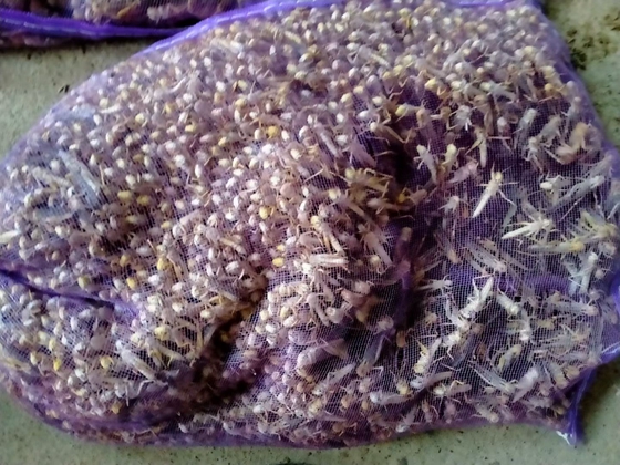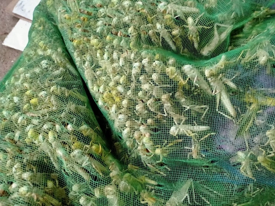 他投資了2000千元蝗蟲種, 然后選擇一處陽(yáng)光最充足的地方將地整平,整了幾個(gè)大棚,開(kāi)始養(yǎng)殖。蝗蟲的養(yǎng)殖成本很低,對(duì)它們來(lái)說(shuō)綠色植物都可以是食物,所以日常的飼料就是嫩草、嫩菜葉,這些基本上就可以維持它們的正常生長(zhǎng)了,但如果想要蝗蟲長(zhǎng)的更快更肥,那么可以適量的加入一些玉米粒、小麥、高粱、谷子、麥稈粉等之類相對(duì)比較有營(yíng)養(yǎng)的食物。