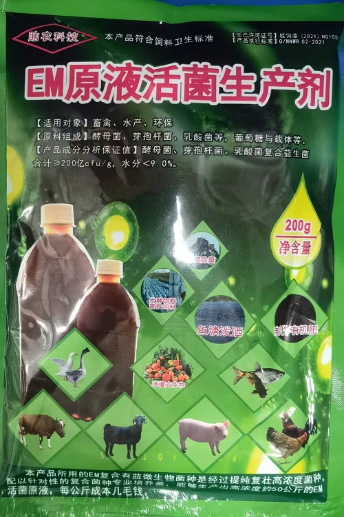 用 EM原液活菌生產(chǎn)劑一包與一公斤紅糖一起溶入50公斤約35℃的溫水中,并用非金屬容器儲存。密封后放在室溫25℃以上的環(huán)境下進行培養(yǎng),僅需24-48小時即可完成培養(yǎng)(PH值在3.5左右),常溫下3個月內(nèi)每毫升含復合益生菌在100-300億,時間越長菌種數(shù)量會隨之下降。密封可以保存一年以上,但3個月內(nèi)使用效果更好。